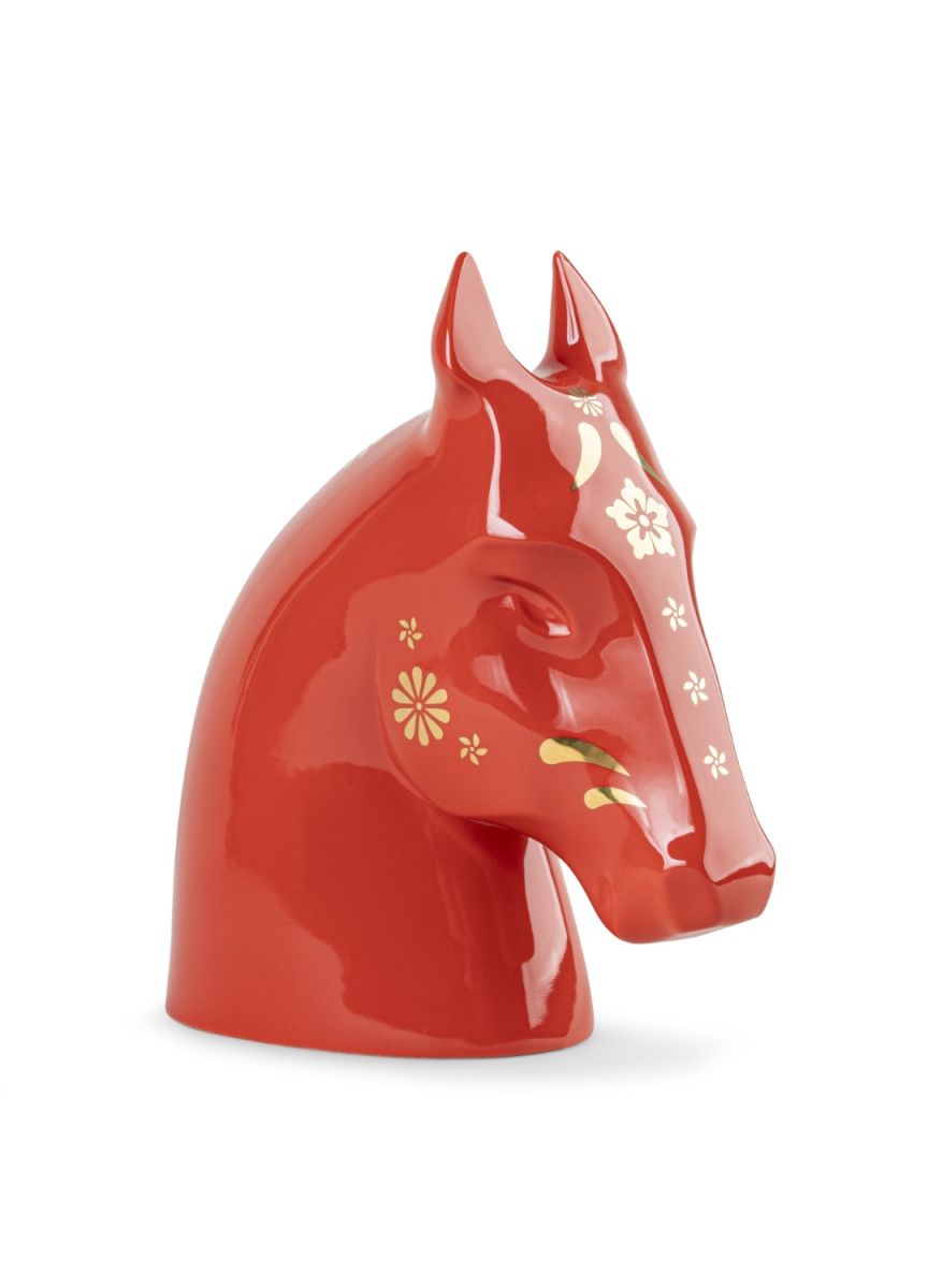Современное прочтение зодиакального образа открывает The Horse из линейки New Concept. Лаконичное изображение головы лошади, выполненное в насыщенной красно-золотой гамме, передаёт внутреннюю динамику и экспрессию образа. Чистота форм, глубокий красный цвет и акценты золотого люстра создают ощущение движения и энергии, а декоративные мотивы, вдохновленные восточной орнаментикой, подчеркивают зодиакальную символику произведения.