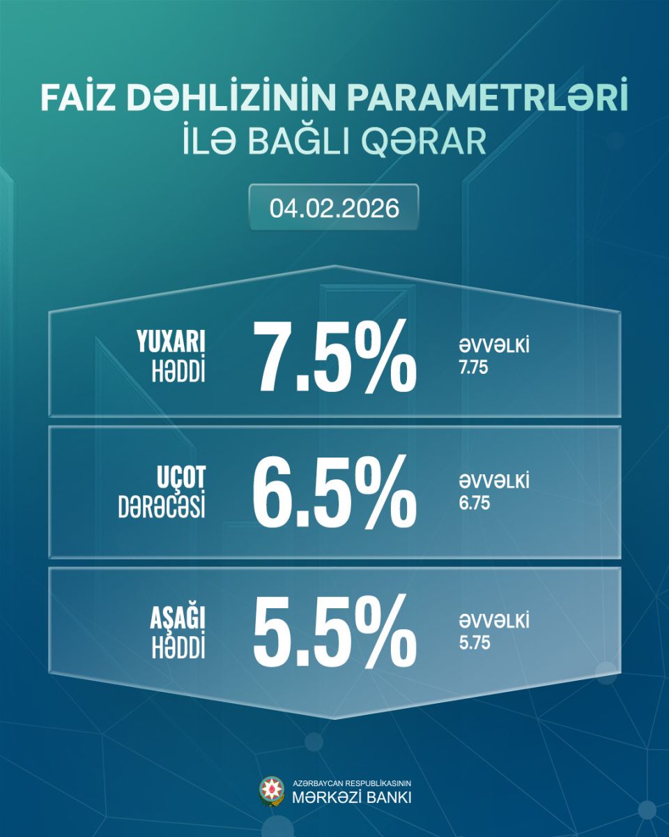 При принятии решения по процентному коридору Центральный банк Азербайджана учитывал соответствие фактической и прогнозируемой инфляции целевому диапазону 4 ± 2%, глобальную экономическую активность и текущую ситуацию на международных финансовых рынках, основные тенденции внутренней макроэкономической среды, а также влияние решений денежно-кредитной политики на финансовые рынки и реальный сектор.