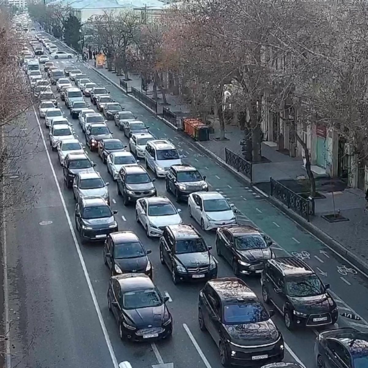 Улица Рашида Бейбутова, в направлении Центрального банка, наблюдается плотное движение.
