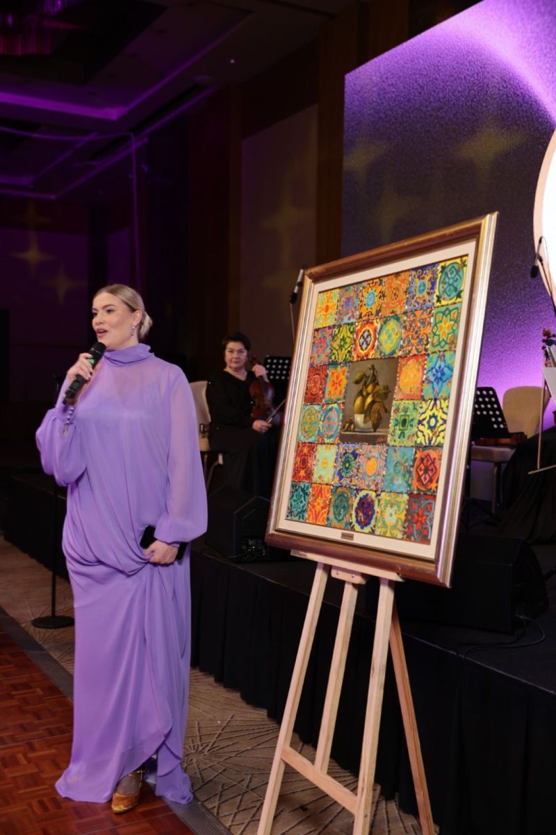 В рамках светской программы вечера также состоялась мини-выставка азербайджанской художницы и общественного деятеля Милены Набиевой.