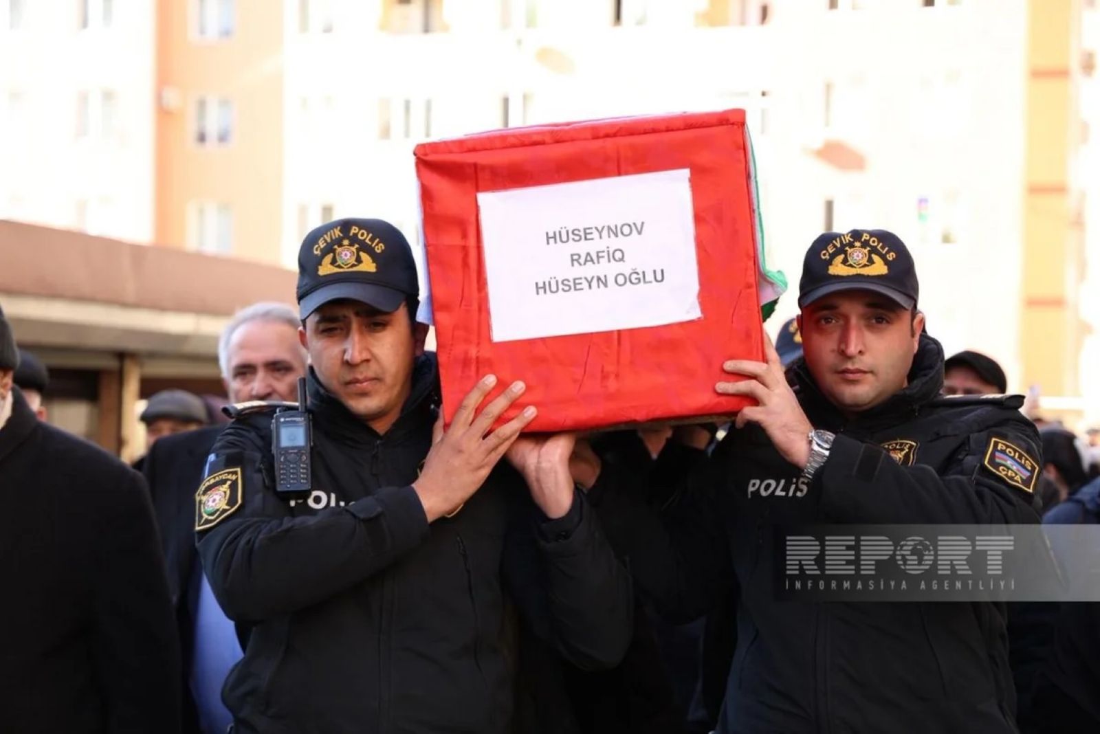 Как сообщает Report, в церемонии прощания приняли участие родственники шехида, представители общественности, Исполнительной власти Гарадагского района, сотрудники правоохранительных органов, а также представители медиа.