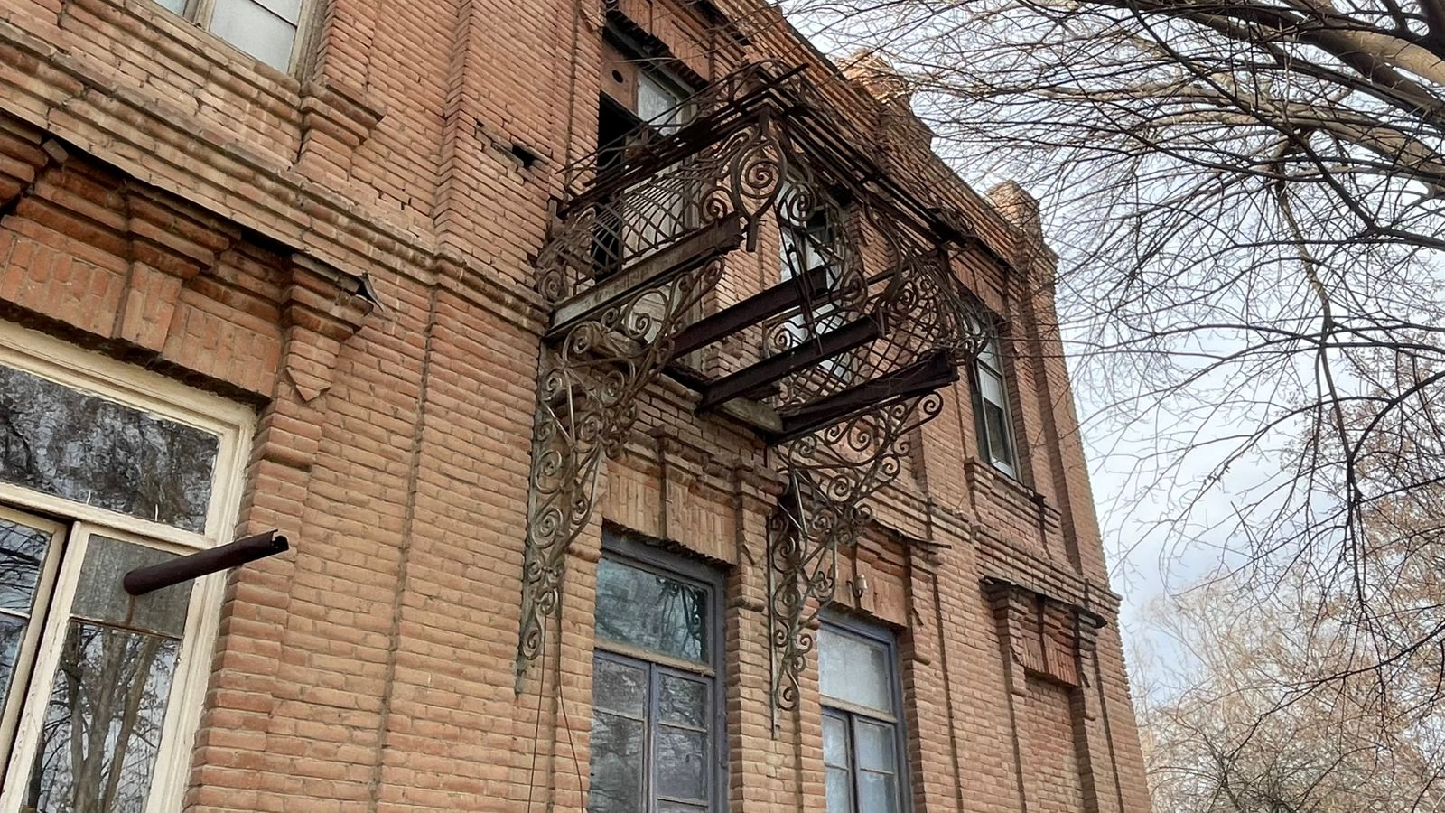 Важно отметить и кованые балконы, расположенные по левому и правому флангам здания, представляют собой выразительный художественный элемент, обогащающий фасадную композицию. Работы по металлу выполнены с тонкой проработкой орнаментальных мотивов, характерных для ремесленной традиции конца XIX — начала XX века. Как и в случае с деревянным балконом главного входа, ритмика металлического рисунка придаёт фасадам лёгкость и создаёт изящный контраст с массивной кирпичной кладкой.