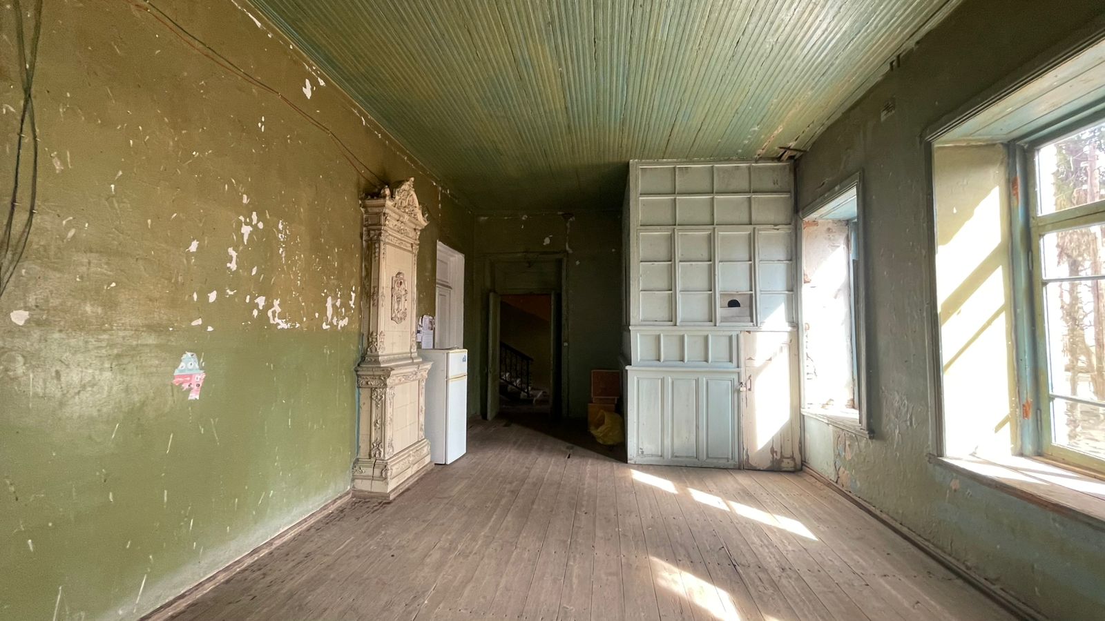 Интерьеры отличались высоким уровнем художественного убранства. Лестницу украшали чугунные перила художественного литья. Особую ценность представляли изразцовые печи-камины, причём в каждой комнате был установлен свой уникальный камин, отличавшийся рисунком и декоративным оформлением. Для сельской усадебной среды подобное решение было редкостью и свидетельствовало о проникновении городской культуры в провинцию. Камины не только украшали интерьеры, но и обеспечивали эффективное сохранение тепла, создавая в доме атмосферу уюта и благополучия.