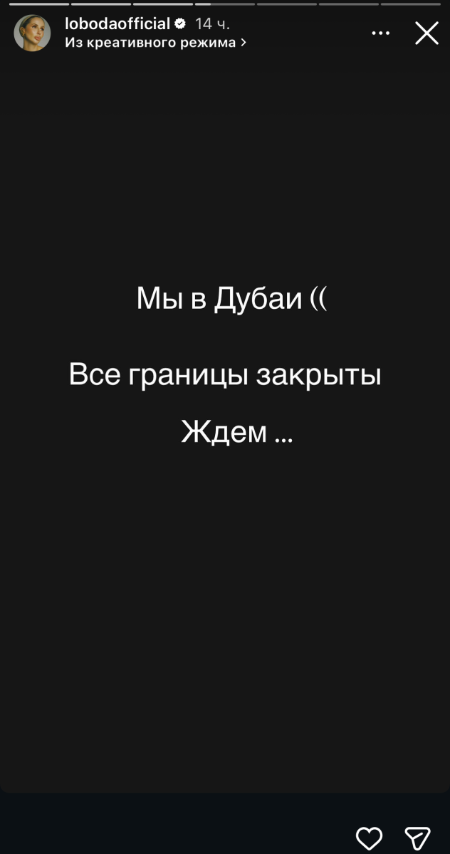 «Дубай, подземный паркинг. Весело», - отмечает С.Лобода, подчеркивая, что границы закрыты и она ждет возможности вылететь из ОАЭ.