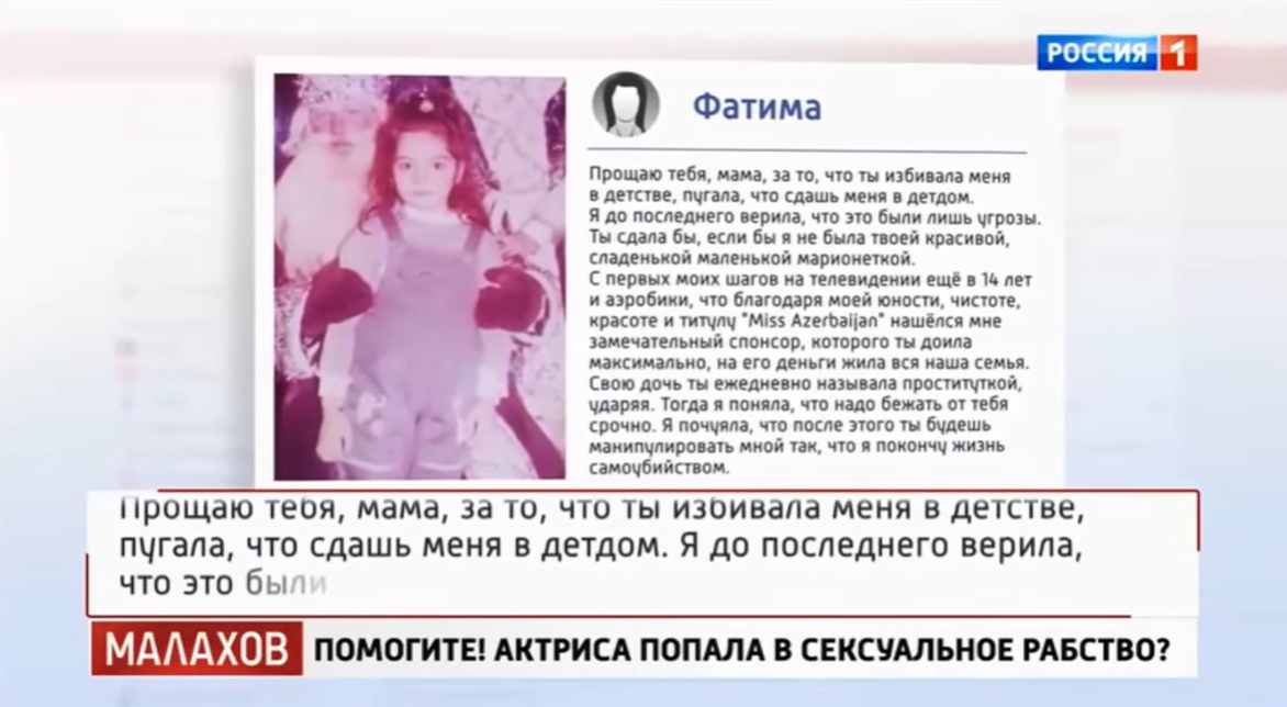 Произошло это на канале «Россия 1» в шоу «Малахов», ведущим которого является Андрей Малахов, и снова в рамках скандальной резонансной темы. Напомним, впервые у А.Малахова она появилась в 2018 году, заявив о том, что была изнасилована народным артистом РФ Марком Розовским. Спустя восемь лет Ф.Абаскулиева вновь пришла в студию, чтобы рассказать новую историю - на этот раз о том, как, по её словам, оказалась в сексуальном рабстве в Китае.