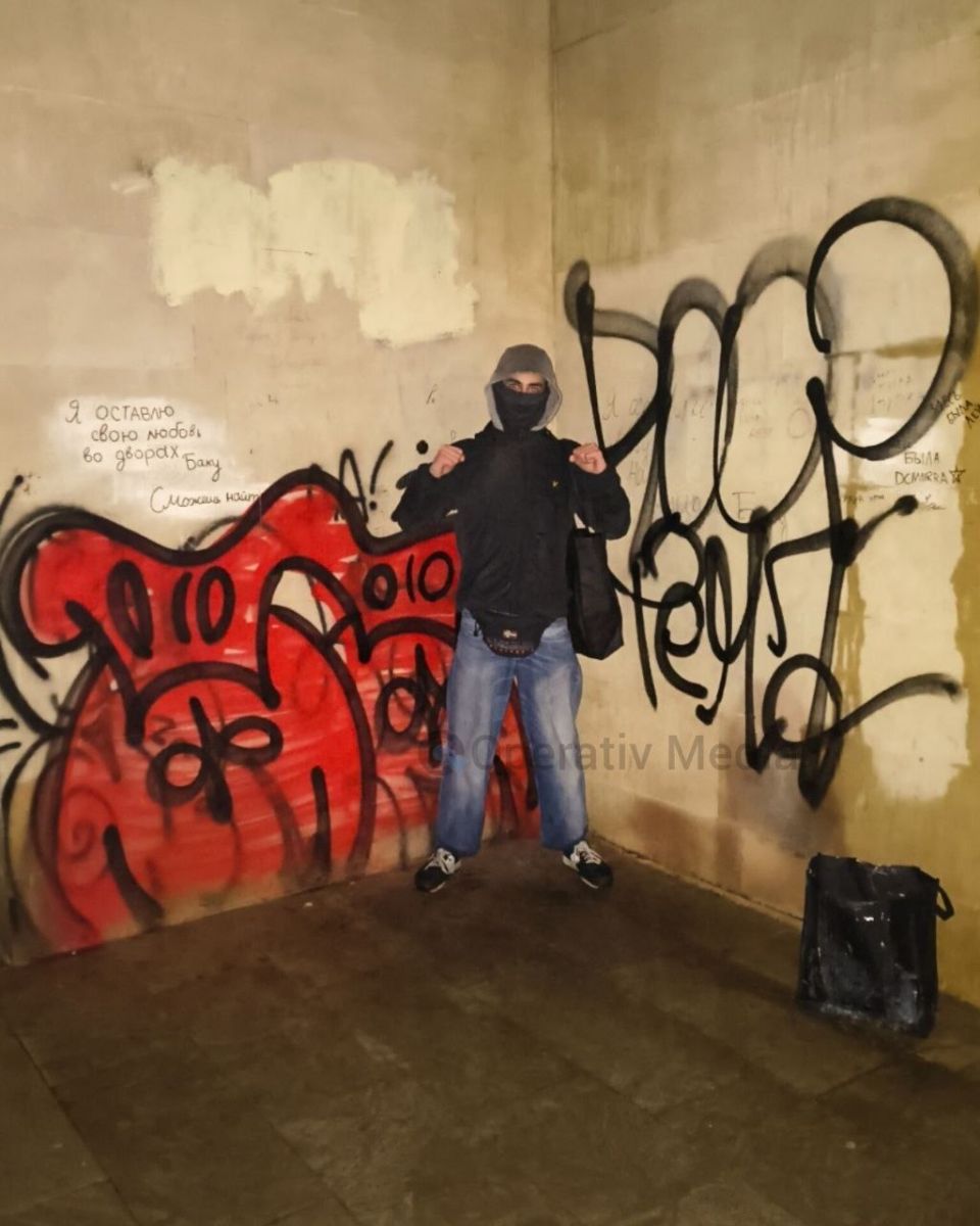 Появились фотографии лиц, нарисовавших граффити на фасаде Киноцентра «Низами».