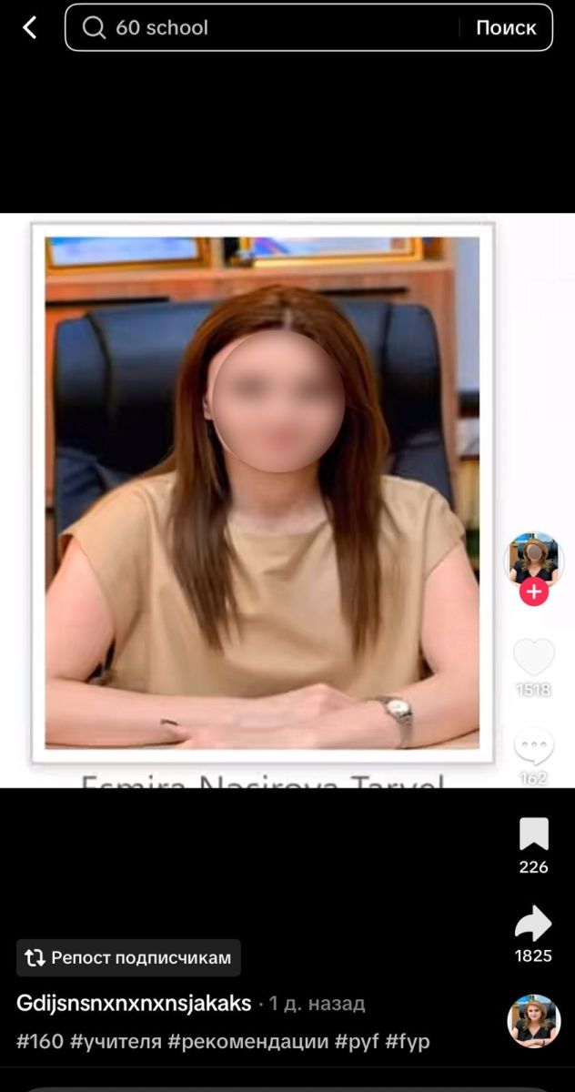 Речь идет о видеороликах, в которых педагоги подвергаются насмешкам, публичному унижению и травле, нарушая элементарные нормы этики и частной жизни. По имеющейся информации, подобная практика не является единичным случаем. Ранее уже существовал аккаунт, где объектом оскорблений становились учителя школ №160 и №165.