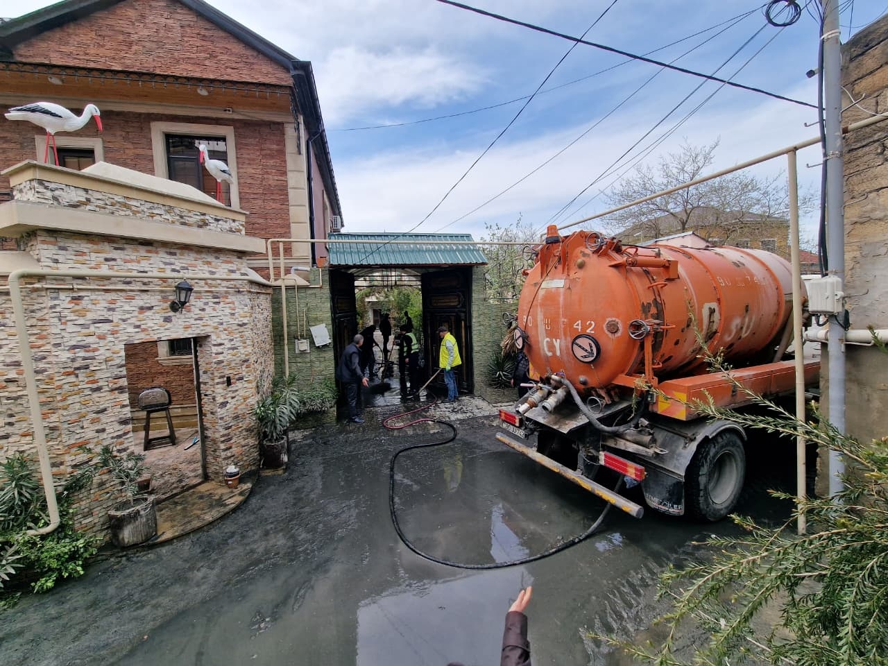 В результате резкого увеличения объема воды в Бакинском кольцевом магистральном коллекторе из-за интенсивных дождей 5-6 апреля, произошел его разлив на участке, проходящем через пересечение улиц М.А.Сабира и К.Афкари в поселке Кешля.