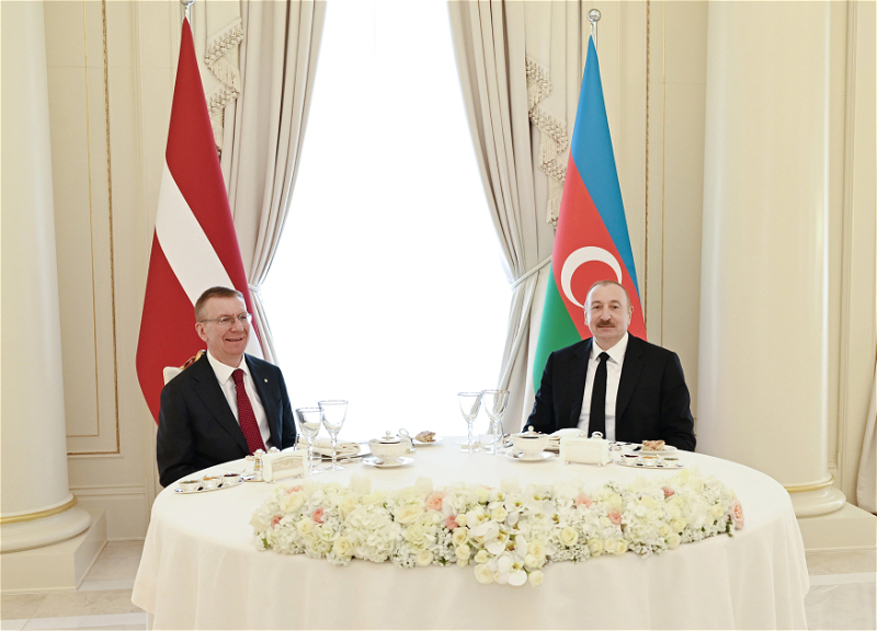 Президент Азербайджана Ильхам Алиев и Президент Латвии Эдгарс Ринкевичс выступили с заявлениями для прессы - ФОТО