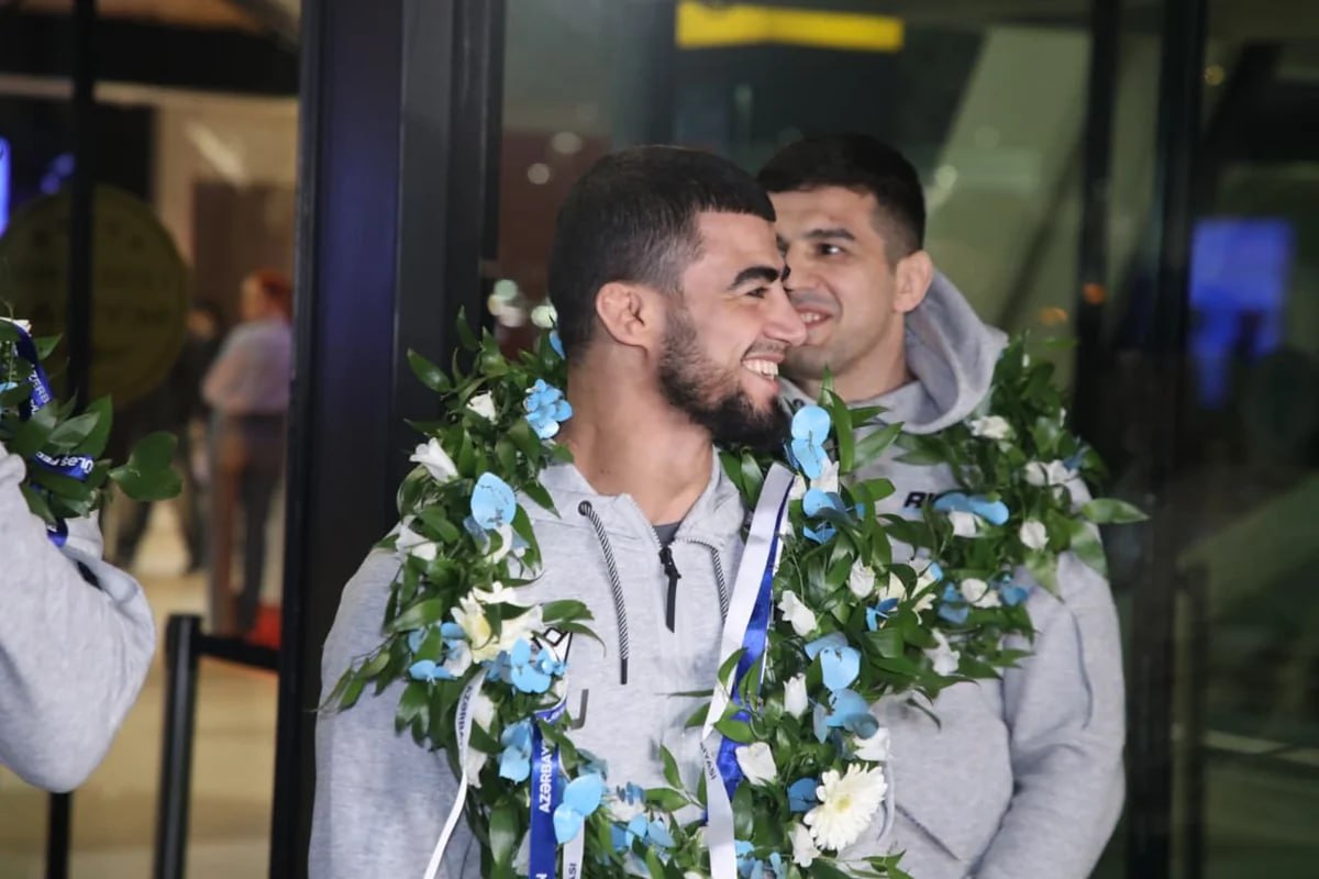 В Международном аэропорту Гейдар Алиев состоялась торжественная встреча сборной Азербайджана по греко-римской борьбе, которая, завоевав на чемпионате Европы в Албании две золотые и три бронзовые медали, заняла первое место в командном зачете и стала чемпионом Европы.