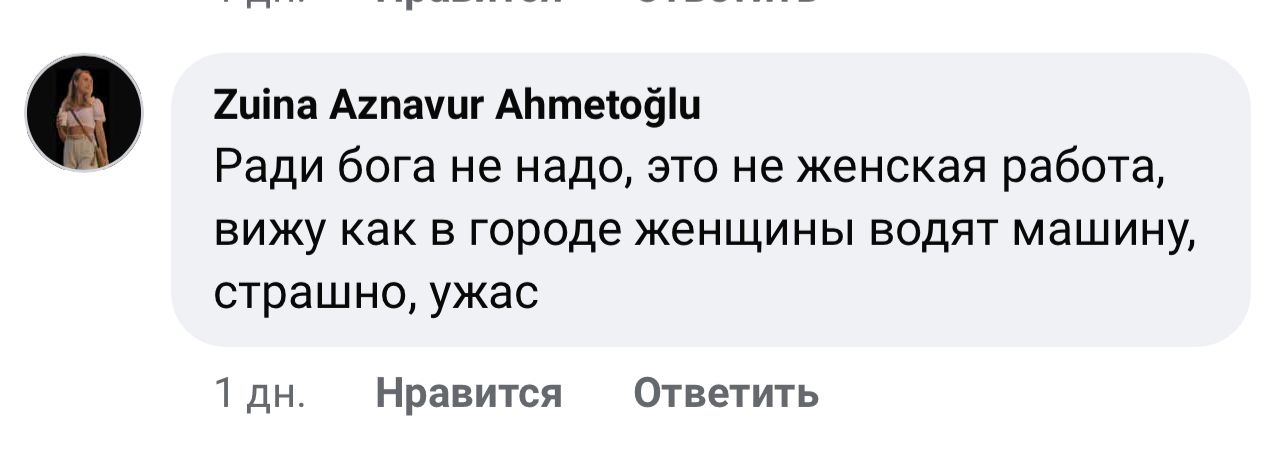 Так или иначе, реальность оказалась куда менее благостной. Вместо взвешенного обсуждения большинство мужчин и, что особенно печально, сами женщины, отреагировали шквалом едких замечаний, насмешек и недовольств. Так, один из комментаторов написал: «Теперь количество аварий увеличится», а другой язвительно отметил: «Какой номер у автобуса? Скажите, чтоб знали и никогда не садились». Не редкостью были и более прямые стереотипные заявления: «Место женщины на кухне с детьми, а не за рулем».