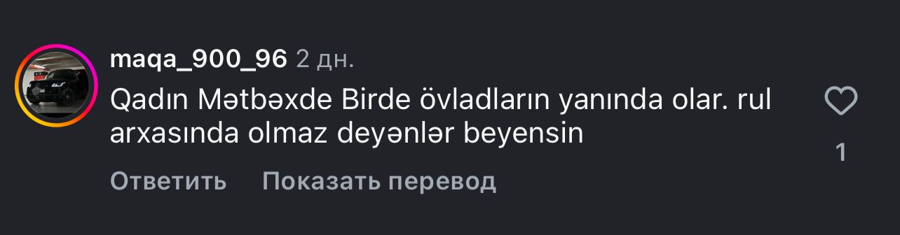 И если мы действительно хотим видеть Азербайджан сильным и развивающимся государством, то должны научиться уважать профессионализм вне зависимости от пола. Женщины имеют такое же право на признание своих способностей и заслуг, как и мужчины, имеют право быть воспринятыми всерьез. И поддержка их участия в разных сферах является не жестом доброй воли, а шагом к более зрелому и здоровому обществу, в котором ценят людей не за их пол, а за их труд, усилия и вклад в общее будущее.