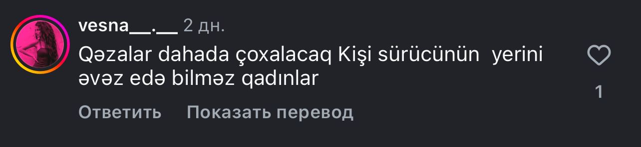 Ведь сегодня Азербайджан открывает женщинам двери туда, куда они раньше не могли войти - в транспортную сферу, на ответственную работу, требующую дисциплины, внимания и технических навыков. Однако, вместо того чтобы увидеть в этом шаг к модернизации и справедливости, многие предпочитают прятаться за устаревшими стереотипами, словно за щитом, который на самом деле давно проржавел.