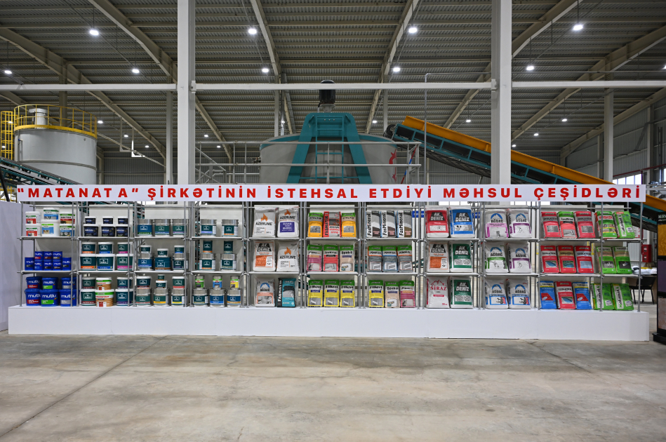 Сначала Президенту Ильхаму Алиеву была предоставлена информация о компании «Матанат-А», основанной в 2000 году. В компанию, которая на протяжении 25 лет функционирует в секторе производства строительных материалов, входят заводы по производству сухих строительных смесей «Матанат-А», по производству гипсокартона и изделий на основе гипса AĞDAĞ, по производству извести, оборудования и станков AZERLİME и машиностроительный завод ELBERG. В общей сложности на предприятиях компании создано около 1000 рабочих мест.